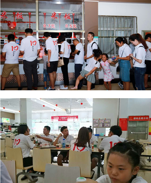 中午,员工们与诸位老师在学校食堂共进午餐,品味曾经的味道,同学们与老师们边吃边聊,仿佛又回到了十几年前,处处场景让人感慨,带给员工们无数的感动。